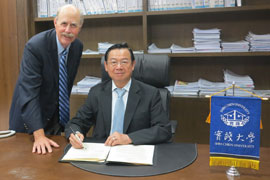 陳振貴校長與紐約州立大學弗雷多尼亞分校簽定姊妹校合約。
