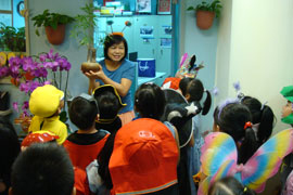 | 西洋鬼節是國曆10月31日,名為萬聖節,「不給糖,就搗蛋!」是屬於萬聖節小孩的專利,今年實踐附幼仍舊舉行各種千奇百怪、豐富熱鬧的化裝遊行,這次還將遊行擴大到校園外社區內,整個活動像慶典般地瀰漫歡樂氣氛。 |