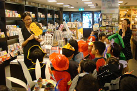 屈臣氏Apple阿姨和祐瑜媽咪考驗小朋友認字。 |
