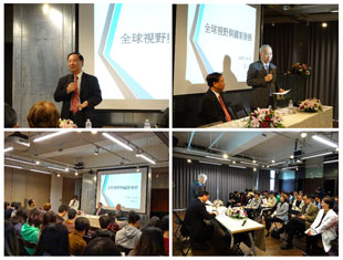 105年12月2日辦理「全球視野與國家發展」大師論壇,邀請國立台灣大學政治學系暨國家發展研究所葛永光教授與謝孟雄董事長對談。全世界的問題歸納言之不外民族、民權、民生三大問題,孫中山的三民主義就是探討國家發展的學說。講座內容從民族主義談民族文化,論及國家整合、國家發展,提供師生全球視野與國家發展整合性的見解。