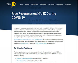 因應疫情,Project Muse限時免費,多種期刊及圖書資源開放利用。