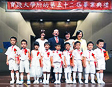 今年綿羊班畢業表演是「鼓動青春、舞力全開」,陣陣的鼓聲節奏敲動人心,活力的舞姿震撼全場。白兔班的表演「運動小將組曲」,一群籃球選手配合音樂旋律,展現出超強的控球成果,還有一群拿著彩球和呼拉圈的啦啦隊賣力的加油,讓全場觀眾為之瘋狂。畢業班老師和小朋友一起製作的「第52屆畢業影片」,回顧了小寶貝在學校三年的點點滴滴,還有對自己未來的期許,讓所有家長感動落淚。二位畢業生代表,也能從容不迫的在台上侃侃而談,展現大將之風。最後在一首〈你的愛陪我發光〉的音樂中,老師傳遞出給所有畢業生的祝福,期望所有寶貝都能勇敢面對未來的挑戰。 |
